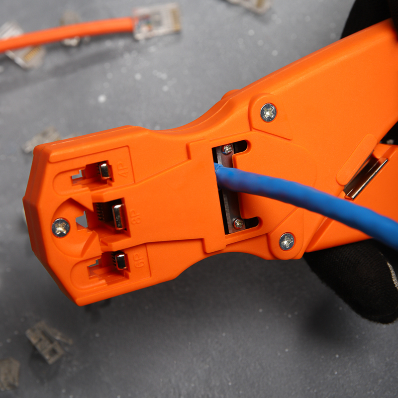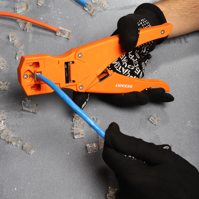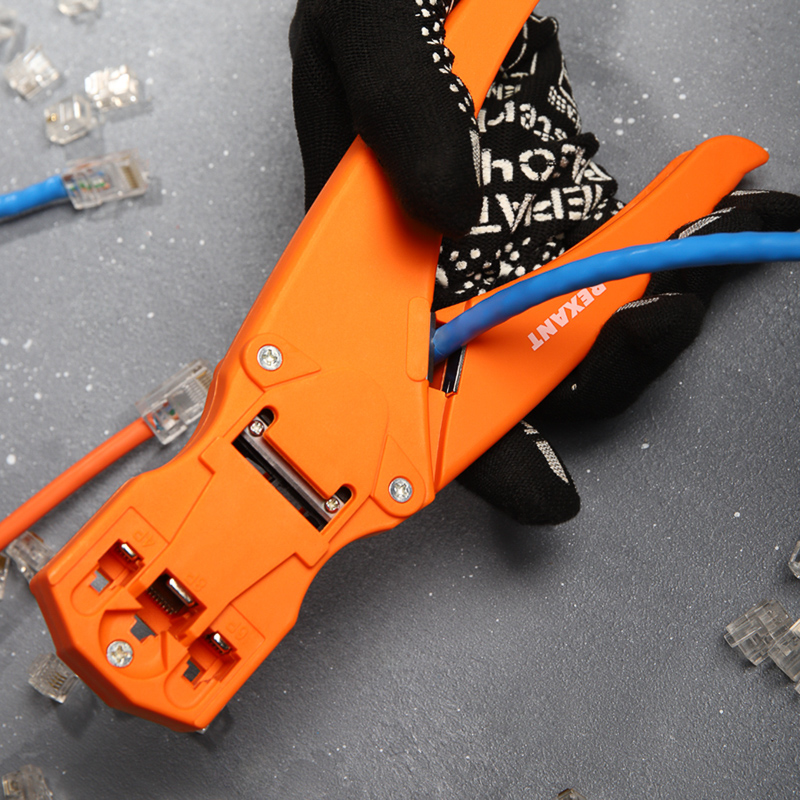 Корпус кримпера изготовлен из ударопрочного пластика, что облегчает работу с инструментом и снижает нагрузку на руку. Обладает дополнительными функциями обрезки проводов и снятия изоляции с плоских и круглых кабелей. Оснащен возвратным механизмом, который обеспечивает обратный ход рукояток и упрощает процесс работы с инструментом. Удобные нескользящие рукоятки делают работу с инструментом легкой и приятной.