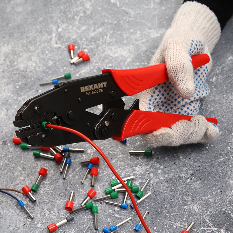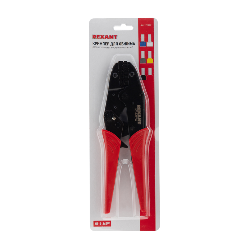 Кримпер HT-5-26TW предназначен для обжима двойных штыревых наконечников сечением 0,5–6 мм².