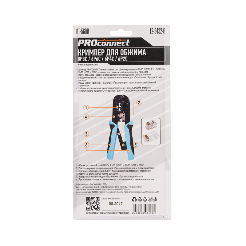 Кримпер HT-568R предназначен для обжима компьютерных и телефонных разъемов RJ-45, RJ-12, RJ-11.