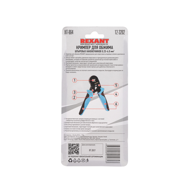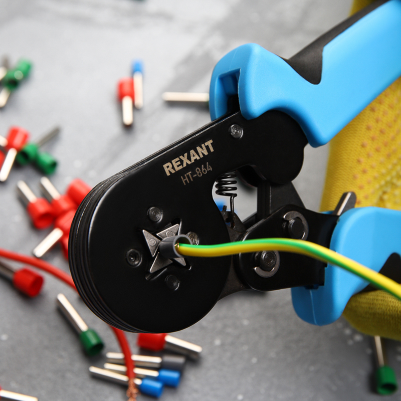 Кримпер HT-864 предназначен для обжима штыревых наконечников сечением 0,25–6 мм².