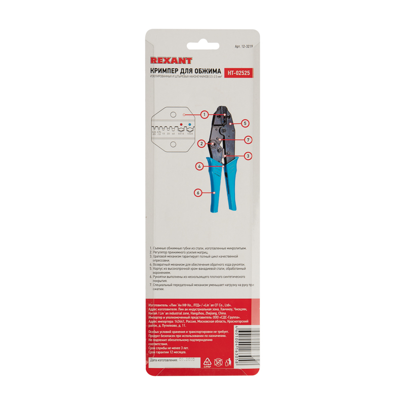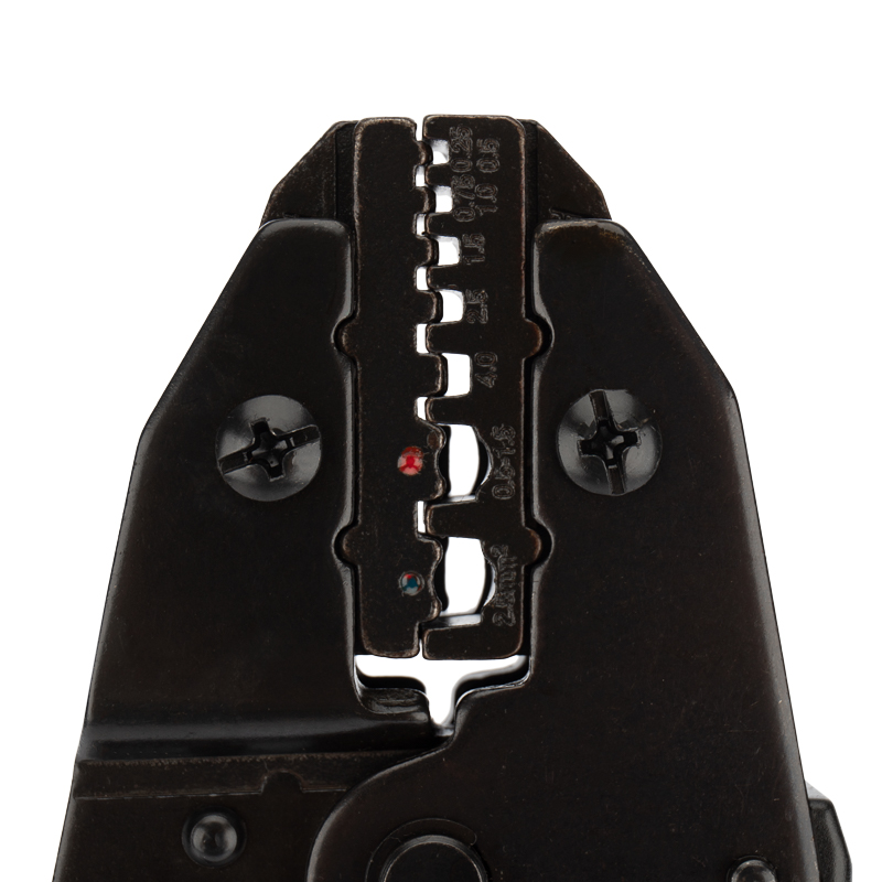 Корпус кримпера изготовлен из высокопрочной закаленной инструментальной стали с воронением, благодаря чему устойчив к механическим воздействиям и имеет продолжительный срок службы. Съемные обжимные губки изготовлены микролитьем и гарантируют точное соответствие размеру и форме клемм и контактов. Двухконтурная матрица позволяет совершать обжим как по изоляции, так и по жиле. Специальный регулятор позволяет контролировать прижимное усилие матриц. Также инструмент оснащен передаточным механизмом, который уменьшает нагрузку на руку при сведении рукояток и возвратным механизмом для упрощенного процесса работы с инструментом. Храповой механизм производит полный цикл качественной опрессовки. Однокомпонентные защитные рукоятки выполнены из плотного нескользящего синтетического материала, который делает работу с инструментом легкой и приятной.