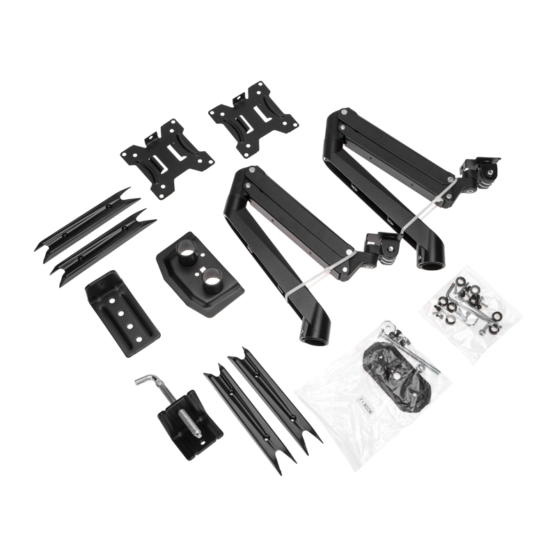 Кронштейн предназначен для крепления двух мониторов 13"-32" дюймов к столу. Оборудован газлифтом для удобной и комфортной регулировки положения экранов в любых плоскостях.