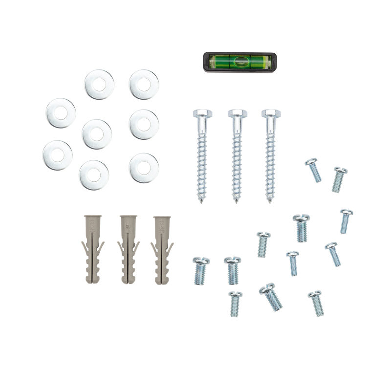 В комплекте поставляются все необходимые универсальные крепления. Для удобства монтажа предусмотрен встроенный строительный уровень.