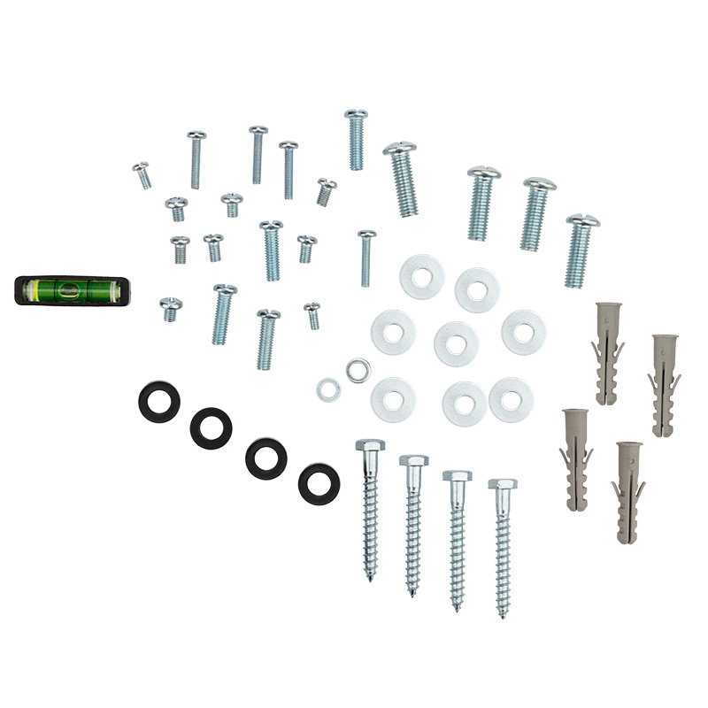 В комплекте поставляются все необходимые универсальные крепления для монтажа, а также строительный (пузырьковый) уровень.