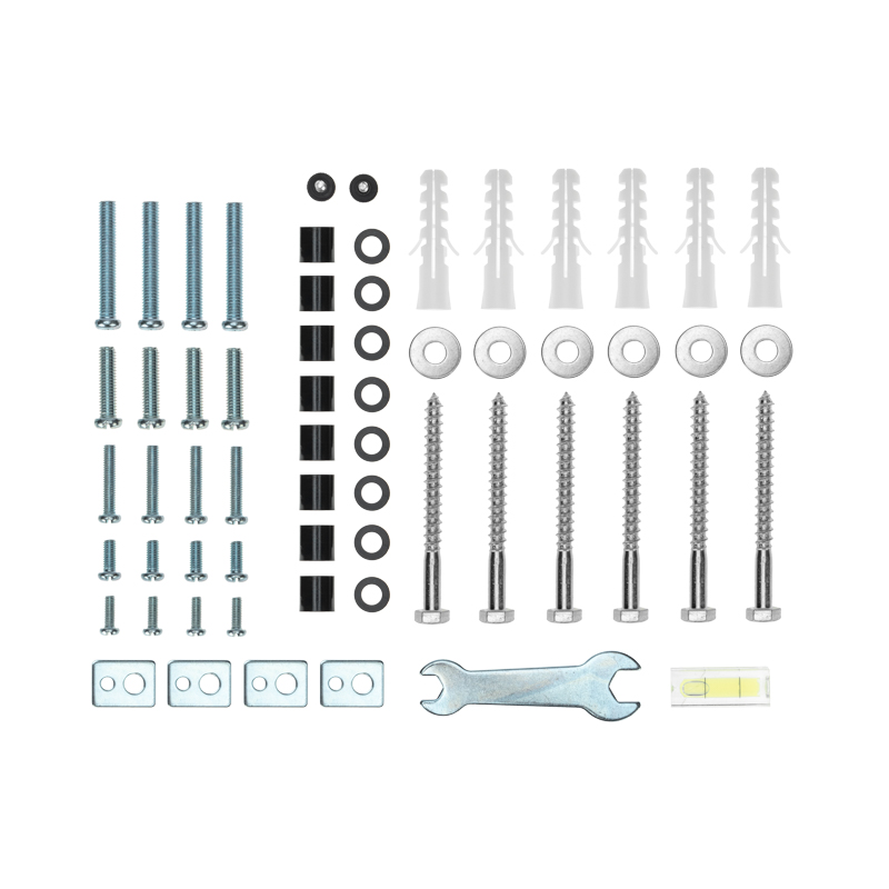 В комплекте поставляется пузырьковый уровень, а также все необходимые крепления для установки изделия, что обеспечивает удобный и быстрый монтаж.