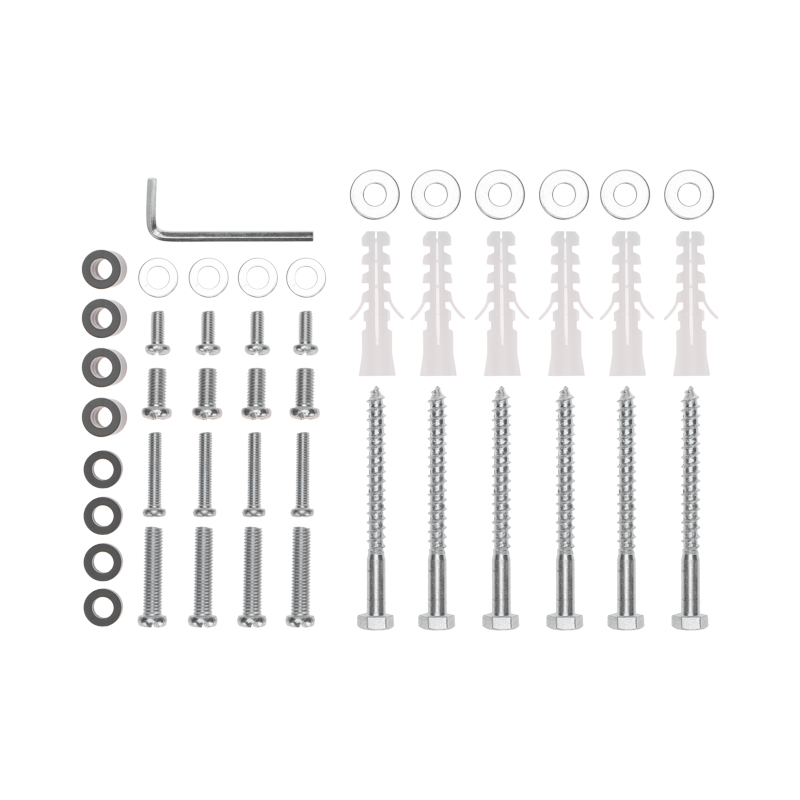 В комплекте поставляются все необходимые крепления для установки изделия. Для обеспечения удобного и быстрого монтажа кронштейн оснащен встроенным пузырьковым уровнем.