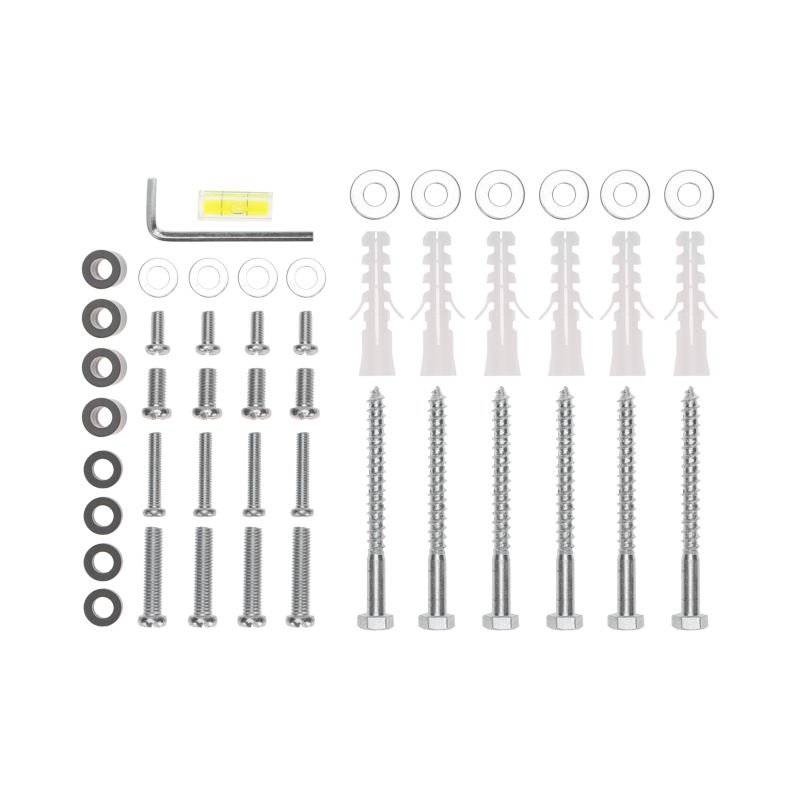 В комплекте поставляется пузырьковый уровень, а также все необходимые крепления для установки изделия, что обеспечивает удобный и быстрый монтаж.