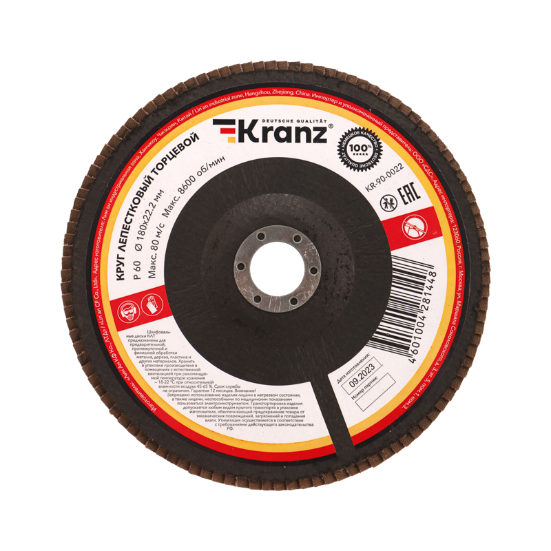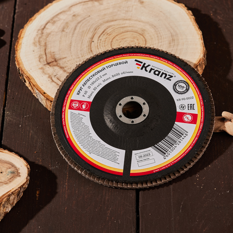 Круг лепестковый торцевой, P60, 180х22,2мм KRANZ