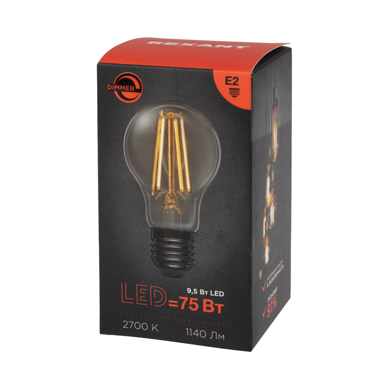 Филаментная лампа в форме груши REXANT используется для общего и для дизайнерского и освещения комнат, домов, гостиниц и других объектов. Оснащена диммером: яркость свечения можно регулировать. Обладает высокой энергоэффективностью, износоустойчивостью и долгим сроком службы. Не нагревается благодаря равномерному распределению температуры