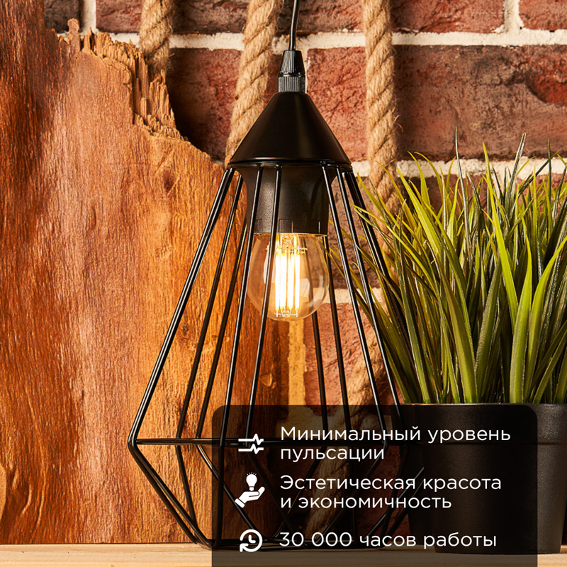 Филаментная лампа в форме шарика выступает как в качестве источника искусственного освещения, так и элемента декора. Благодаря компактным размерам лампы данного типа зачастую устанавливаются в небольшие люстры, настенные бра, маленькие настольные лампы или в другие осветительные приборы, для которых стандартная лампа слишком мала (выступает из-за плафона или не помещаться вовсе).