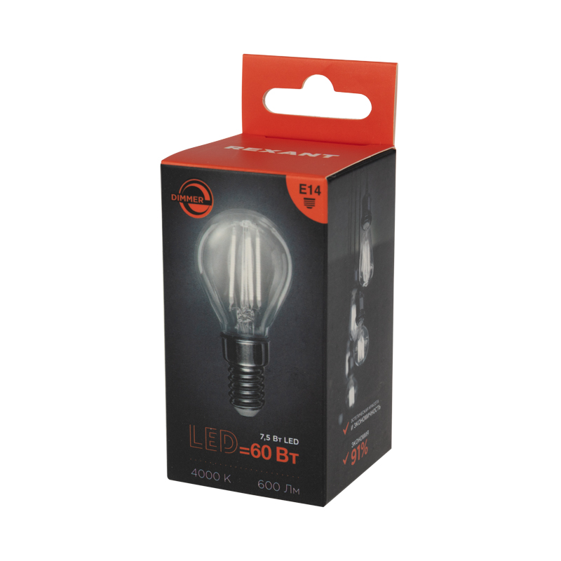 Также лампа равномерно распределяет температуру, благодаря чему не нагревается. Обладает мощностью в 7,5Вт и цоколем Е14.