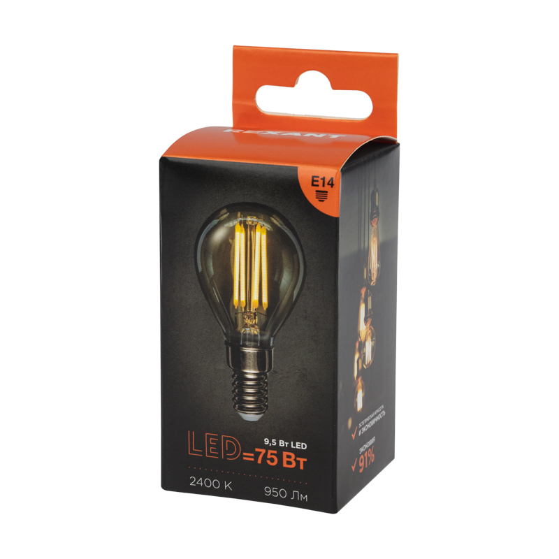 Также лампа равномерно распределяет температуру, благодаря чему не нагревается. Обладает мощностью в 9,5Вт и цоколем Е14.