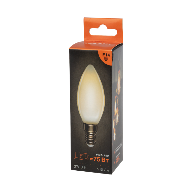 Филаментная лампа с матовой колбой имеет форму, имитирующую пламя свечи, за счет чего и получила свое название. Обеспечивает качественное основное и дизайнерское освещение различных помещений. За счет распространения света во всех направлениях имеет широкий угол освещения и может быть установлена любым способом.