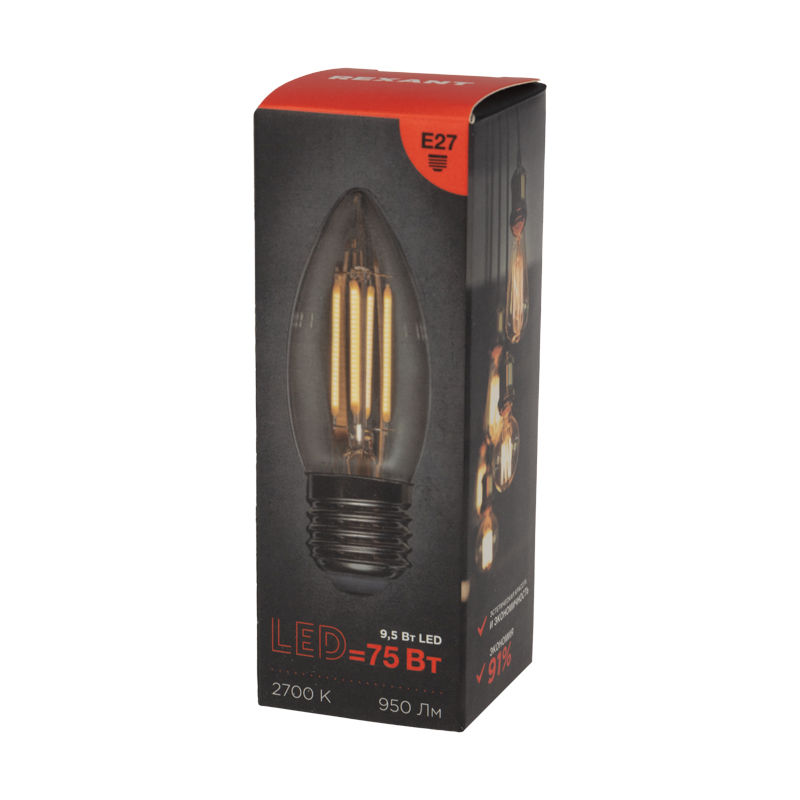 Филаментная лампа имеет форму, имитирующую пламя свечи, за счет чего и получила свое название. Обеспечивает качественное основное и дизайнерское освещение различных помещений. За счет распространения света во всех направлениях имеет широкий угол освещения и может быть установлена любым способом.