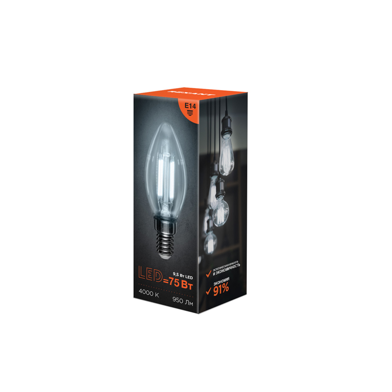 Филаментная лампа имеет форму, имитирующую пламя свечи, за счет чего и получила свое название. Обеспечивает качественное основное и дизайнерское освещение различных помещений. За счет распространения света во всех направлениях имеет широкий угол освещения и может быть установлена любым способом.