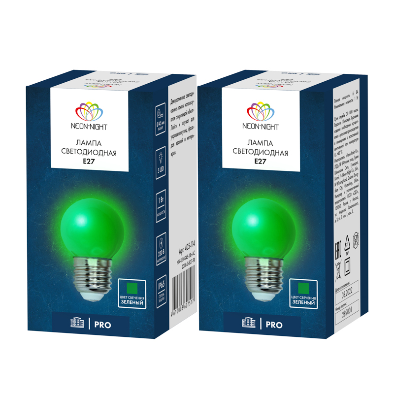Лампа светодиодная, диаметр 45мм, E27, 5 LED, 2Вт, ЗЕЛЕНЫЙ, 230В NEON-NIGHT