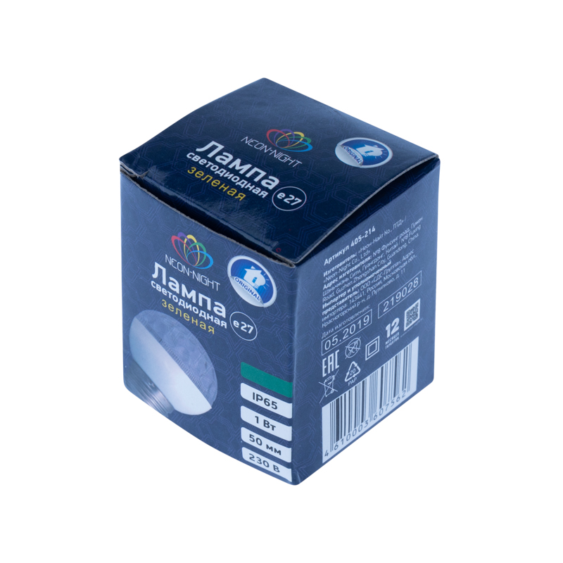 Лампа светодиодная, диаметр 50мм, Е27, 10 LED, 1Вт, ЗЕЛЕНЫЙ, прозрачная колба, 24В, постоянное напряжение NEON-NIGHT