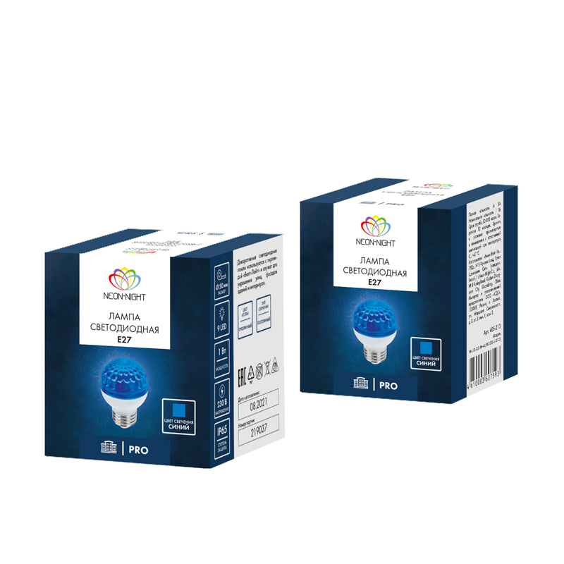 Лампа светодиодная, диаметр 50мм, E27, 9 LED, 1Вт, СИНИЙ, прозрачная колба, 230В NEON-NIGHT