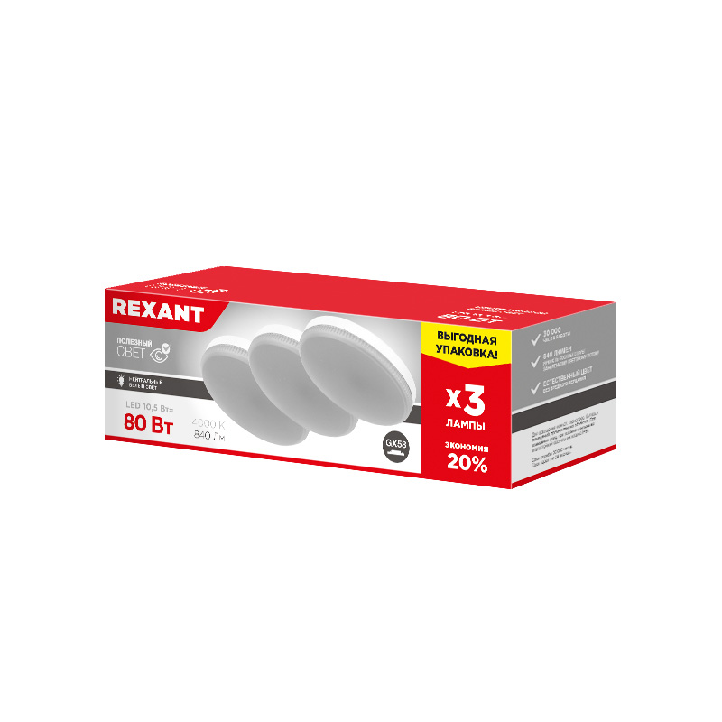 Светодиодные ламы REXANT сочетают в себе качественную цветопередачу и гарантированный световой поток без потери мощности. Обладают электромагнитной совместимостью и низкой пульсацией.