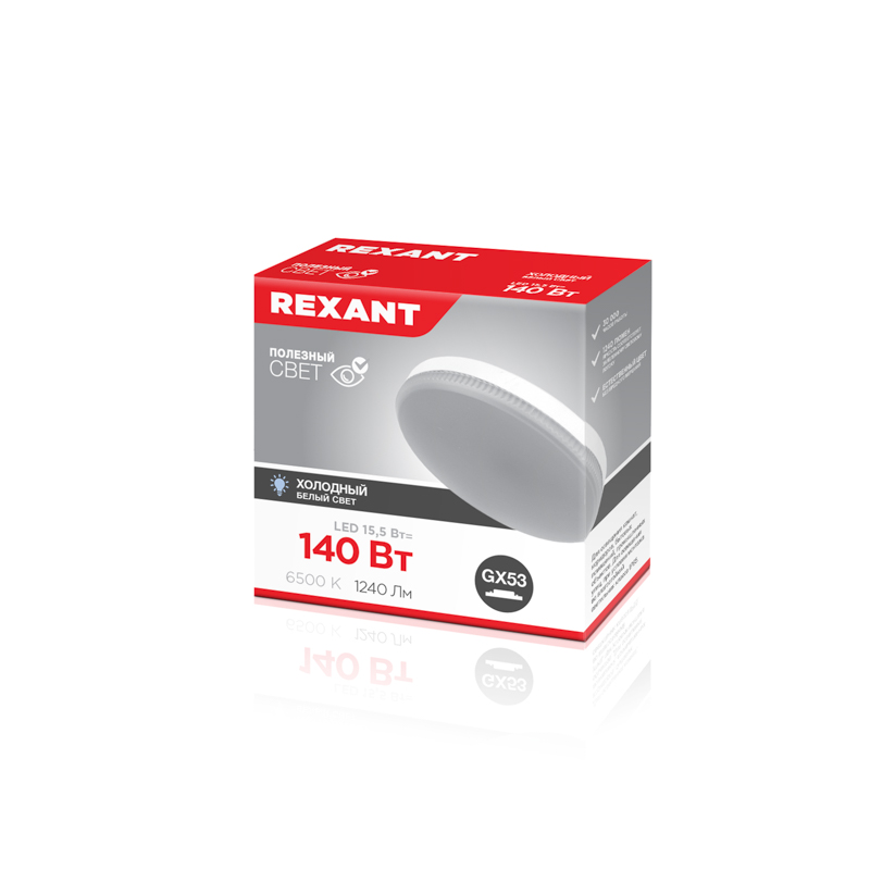 Лампа светодиодная таблетка с цоколем GX53 представляет собой источник света мощностью 15,5Вт. Имеет круглую плоскую форму. Компактные размеры позволяют устанавливать лампы в помещениях, где между основным потолком и подвесным/натяжным небольшое расстояние. Зачастую такие лампы встраиваются в мебель, зеркала, витрины и т.д.
