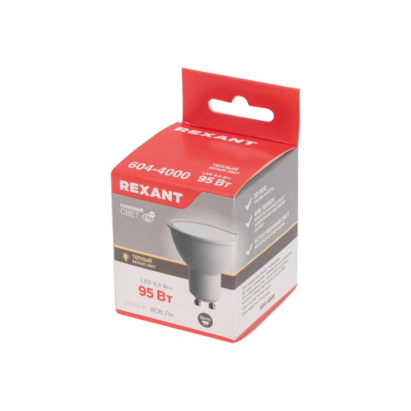 Светодиодная лампа рефлектор REXANT служит для освещения бытовых помещений и офисов. Пользуется популярностью при создании декоративного, акцентного, или специального освещения, а также при подсветке небольших предметов. Оснащена штырьковым цоколем GU10. Цвет свечения – теплый (2700K). Мощность – 9,5Вт.
