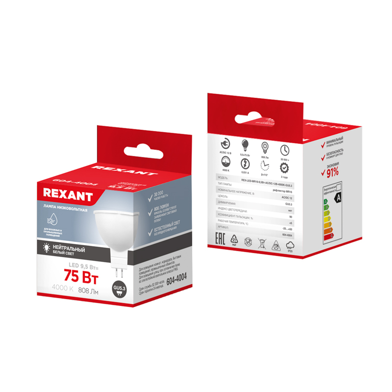 Светодиодная лампа рефлектор REXANT служит для освещения бытовых помещений и офисов. Пользуется популярностью при создании декоративного, акцентного, или специального освещения, а также при подсветке небольших предметов. Оснащена штырьковым цоколем GU5.3. Цвет свечения – нейтральный (4000K). Мощность – 9,5Вт.
