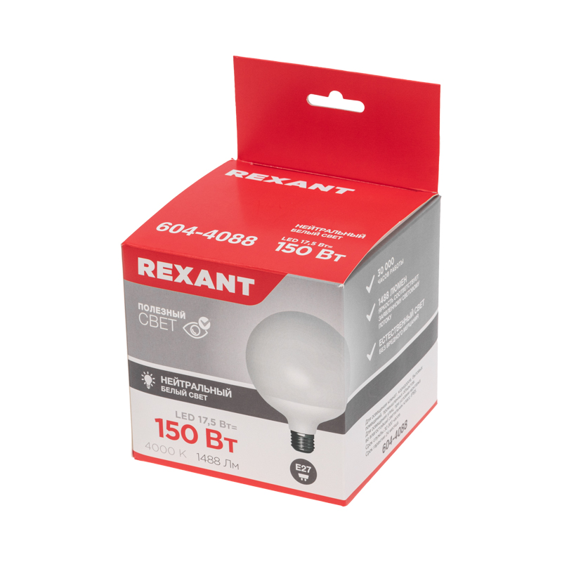 Светодиодная лампа, выполненная в форме шара, отлично подходит для освещения комнат, коридоров, бытовых помещений и промышленных объектов. Мощность– 17,5 Вт, цоколь – E27.