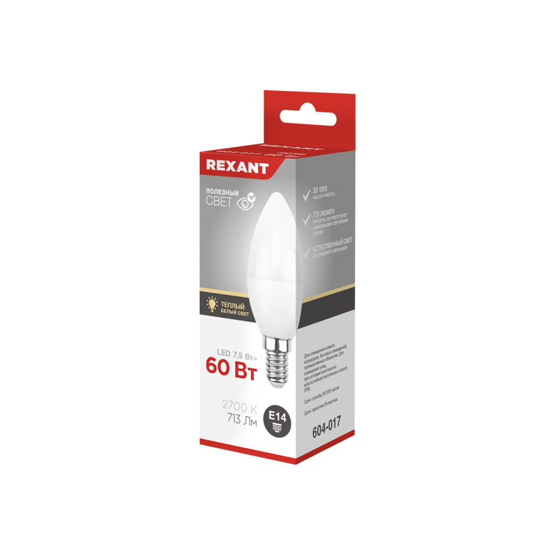Электромагнитная совместимость, низкая пульсация, высокая цветопередача – все это совмещает в себе светодиодная лампа Свеча REXANT.