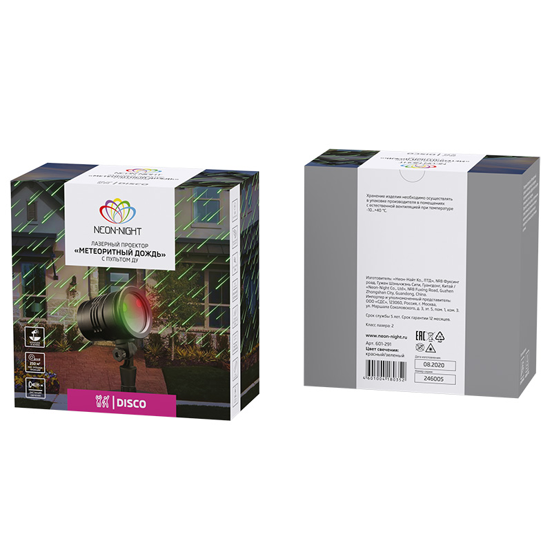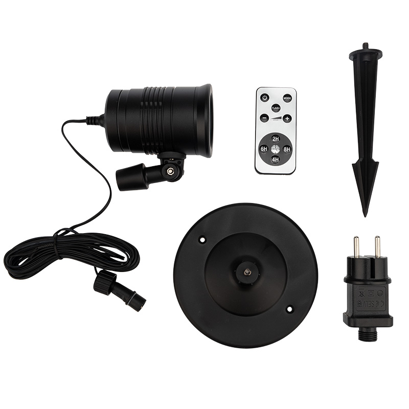 Лазерный проектор «Метеоритный дождь» с пультом дистанционного управления защищен от воздействия влаги и пыли по стандарту IP44 — подходит для использования как дома, так и на улице. Подставка с отверстиями для крепежа устанавливается на любую ровную поверхность, специальный колышек предназначен для размещения в грунте. Светодинамический эффект достигается благодаря лазерным лучам красного и зеленого цвета. Режимы, скорость регулируются, позволяя настраивать проекции по собственному вкусу.