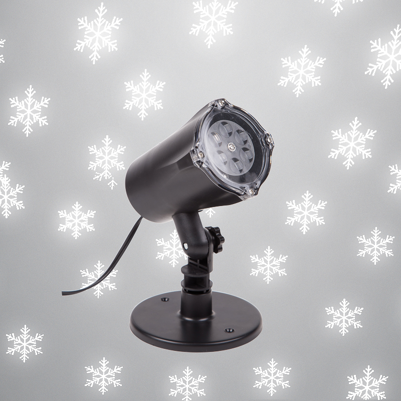 LED-проектор проецирует изображения снежинок на поверхности с расстояния до 15 метров и работает от сети 230 Вольт. Устройство поможет создать праздничную атмосферу и почувствовать приближение новогодних праздников где угодно: на корпоративе, частной вечеринке, семейном ужине. Белые светодиоды экономичны, безопасны и долговечны, а корпус имеет защиту IP44, поэтому проектор рассчитан на длительную работу как дома, так и на улице. Понижающий трансформатор на 14 В делает устройство бесшумным, что дает возможность использовать его в качестве ночника.