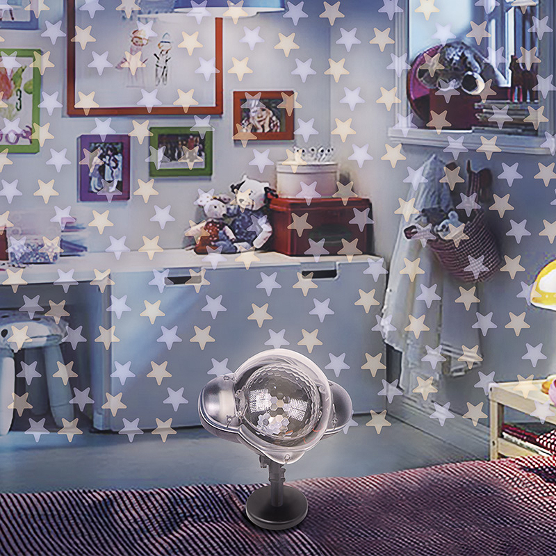 LED-проектор «Звездное небо» с пультом дистанционного управления питается от сети с напряжением 230 Вольт через трансформатор, который значительно снижает уровень рабочего шума. Устройство проецирует изображение звездного неба на любые поверхности с расстояния до 12 метров и может использоваться в качестве ночника. Эффектное световое шоу украсит вашу вечеринку, создаст праздничное веселое настроение гостям. Пульт ДУ позволяет переключать режимы, менять скорость и задавать периоды работы. При рекомендуемом расстоянии площадь проекции имеет размеры 3,5×3,5 метра.