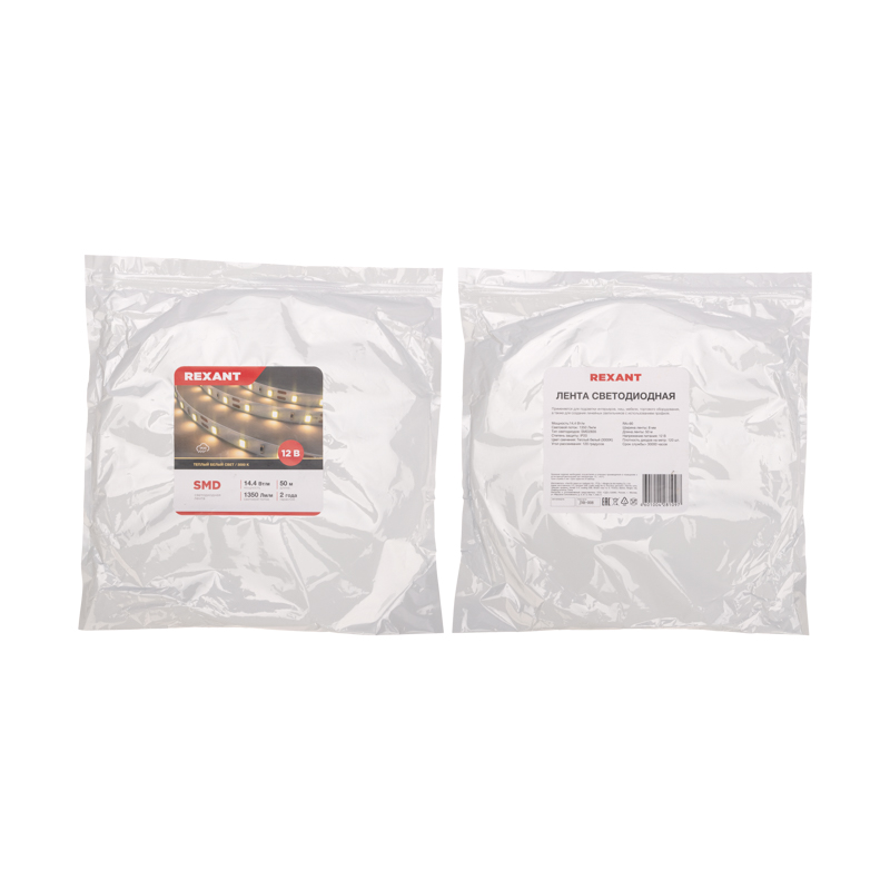 Лента светодиодная 12В, SMD2835, 14,4Вт/м, 120 LED/м, 3000K, 8мм, 50м, IP20 REXANT