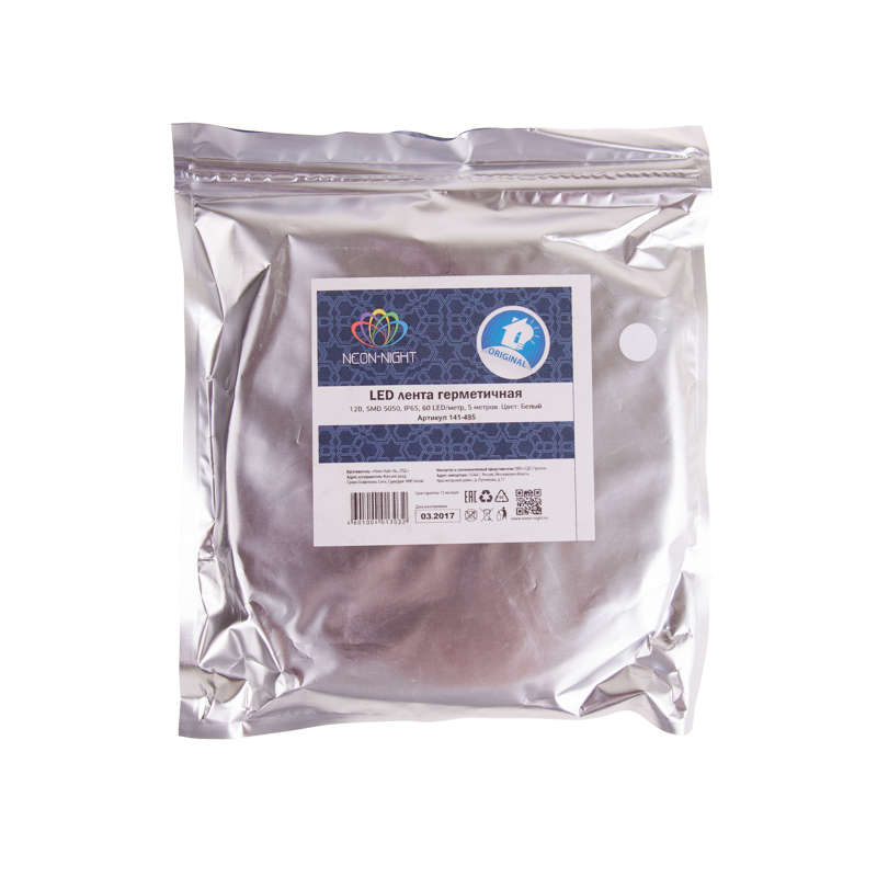 Лента светодиодная 12В, SMD5050, 14,4Вт/м, 60 LED/м, 6500К, 10мм, 5м, IP65 LAMPER