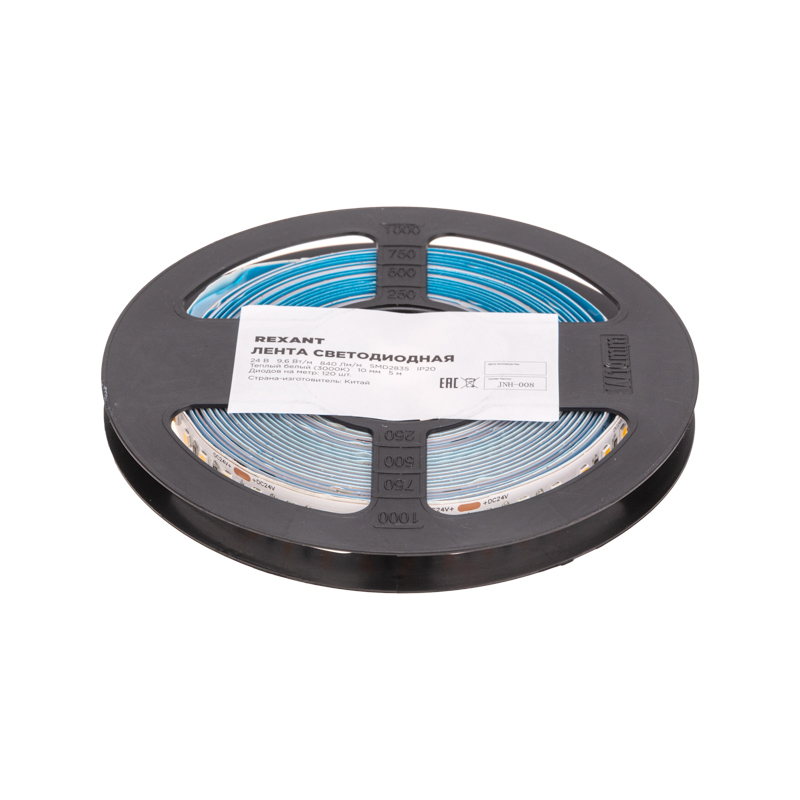 Лента светодиодная 24В, SMD2835, 9,6Вт/м, 120 LED/м, 3000K, 10мм, 5м,IP20 REXANT