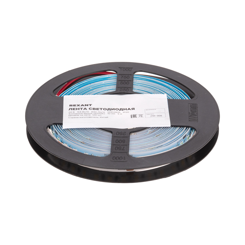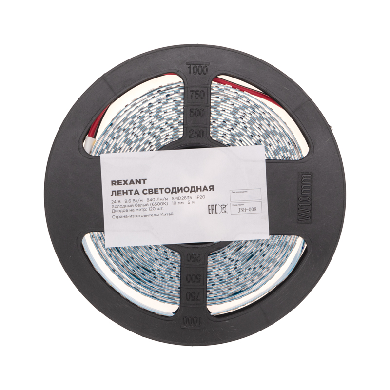 Лента светодиодная 24В, SMD2835, 9,6Вт/м, 120 LED/м, 6500K, 10мм, 5м,IP20 REXANT