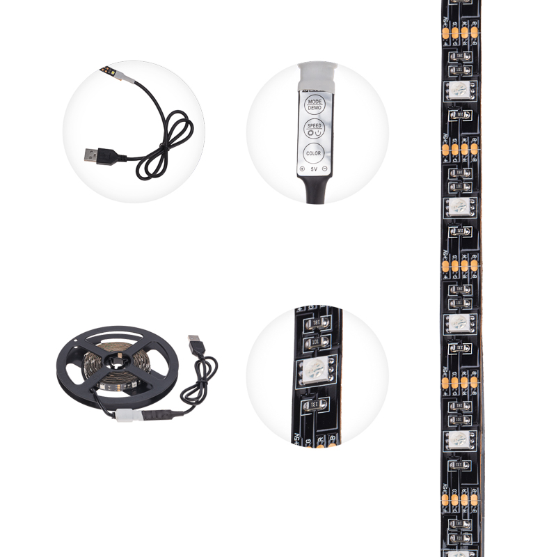 Лента светодиодная 5В, SMD5050, 7,2Вт/м, 30 LED/м, RGB, 10мм, 3м, с USB коннектором, черная, IP20 LAMPER