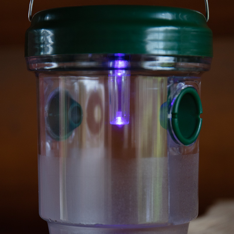 На устройстве установлен один синий светодиод с зарядкой от солнечной батареи. В ночное время этот свет может привлечь больше насекомых к ловушке.