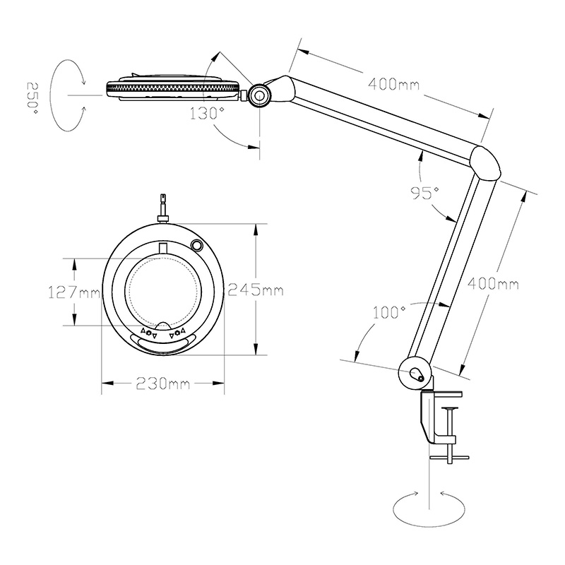 Устройство имеет следующие конструктивные преимущества: стеклянная линза, бестеневая всесторонняя подсветка, модернизированный пантографический механизм, рабочий радиус регулировки 100 см, струбцинное крепление, экономичное энергопотребление, встроенный электронный блок управления.
