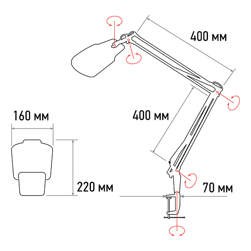 Линза размером 160x127мм изготовлена из стекла и позволяет получить четкое изображение. Пантографический механизм, обеспечивает хорошую устойчивость, а струбцинное крепление надежно фиксирует изделие на любой плоской поверхности. Оснащена встроенным электронным блоком управления, благодаря которому излучает ровный свет без мерцания. Экономична: потребляет в рабочем состоянии всего 6Вт.