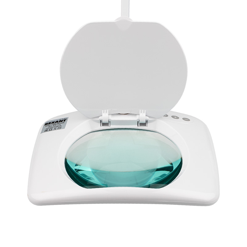 Линза, выполненная из стекла, обеспечивает четкое изображение, а пантографический механизм – устойчивость и фиксацию. Вы сможете расположить лупу так как Вам удобно: радиус регулировки 100 см. Лампа излучает ровный свет без мерцания. В рабочем состоянии потребляет 9 Вт, что экономично.