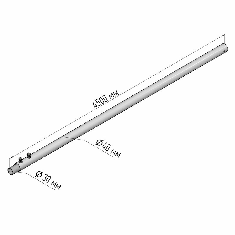 Длина мачты – 4,5 м, количество секций – 3, длина каждой – 150 см, диаметр – 30х2 мм, 35х2 мм, 40х2 мм.