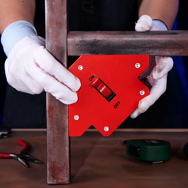 Удобный переключатель позволяет «выключить» магнит во время его крепления к элементам металлоконструкций и «включить» после того, как подготовительные работы будут закончены.