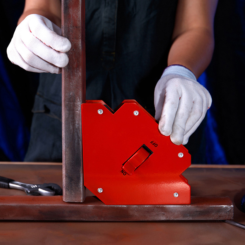 Удобный переключатель позволяет «выключить» магнит во время его крепления к элементам металлоконструкций и «включить» после того, как подготовительные работы будут закончены.