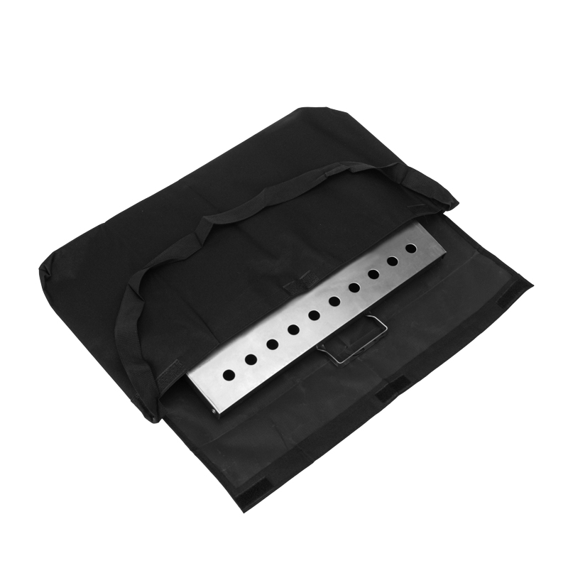 В комплекте предусмотрены 6 угловых шампуров размером 39х0,9х0,1 см, а также черная сумка-чехол для удобного хранения и транспортировки мангала и аксессуаров. Материал сумки – ткань оксфорд. Размеры – 500х300 мм.