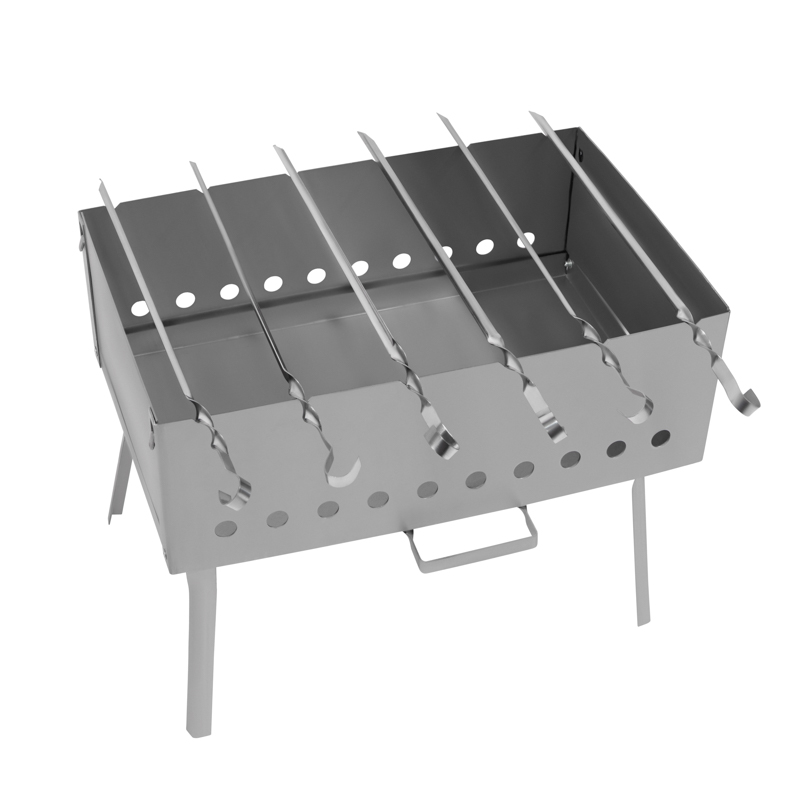 На стенках жаровни размещены специальные прорези, которые позволяют разместить до 6 шампуров. Предусмотрены отверстия для интенсивного горения.