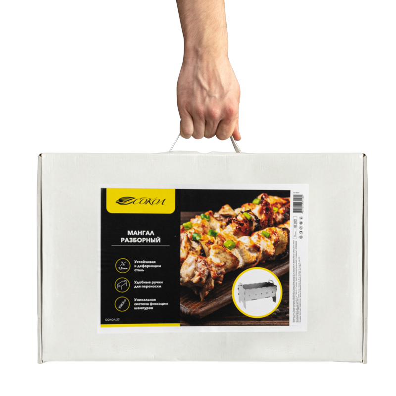Компактный разборный мангал СОКОЛ изготовлен из стали увеличенной толщины, поэтому не подвергается тепловым деформациям от углей и дров. Предназначен для многоразового использования. Сборка и установка мангала производится вручную без использования специальных инструментов.