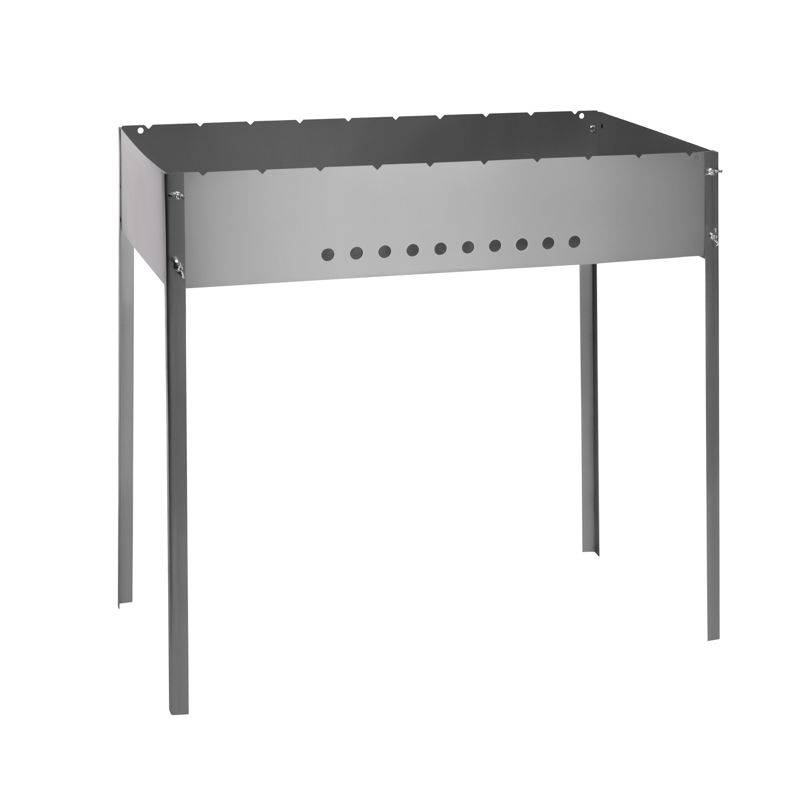 На стенках жаровни размещены специальные прорези, которые позволяют разместить до 10 шампуров. Предусмотрены отверстия для интенсивного горения.