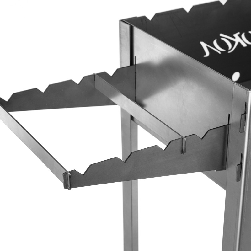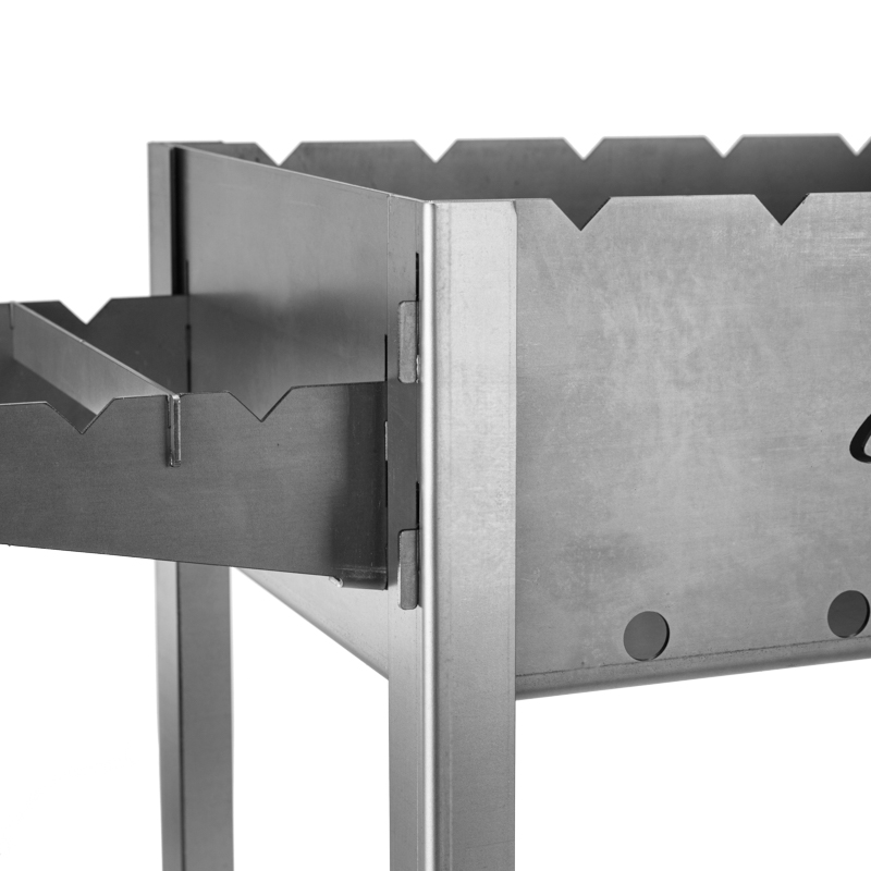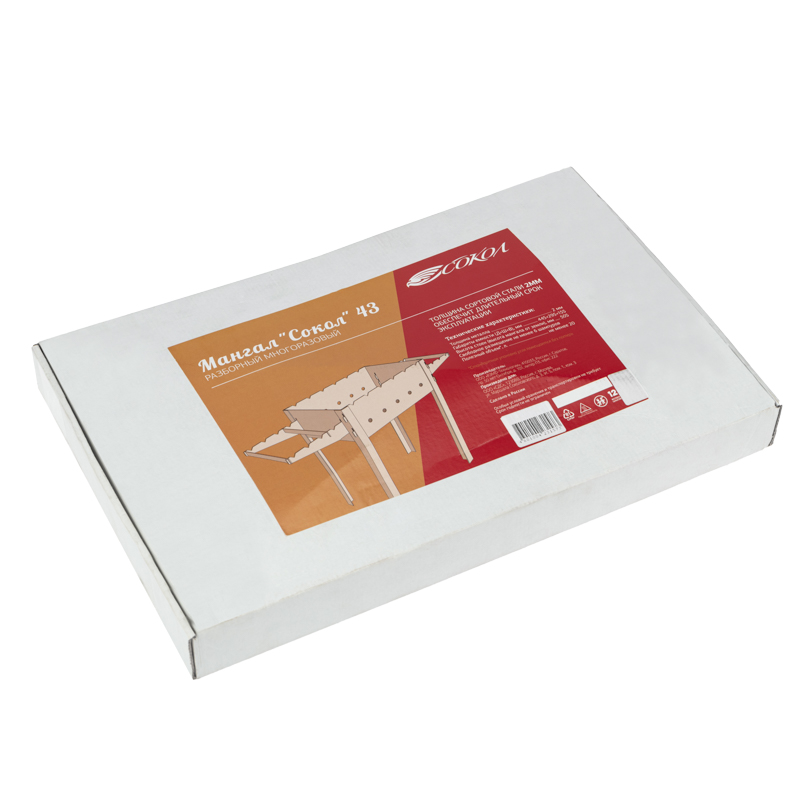 Компактный разборный мангал СОКОЛ изготовлен из стали увеличенной толщины (2 мм), поэтому не подвергается тепловым деформациям от углей и дров. Сборка и установка мангала производится вручную без использования специальных инструментов.