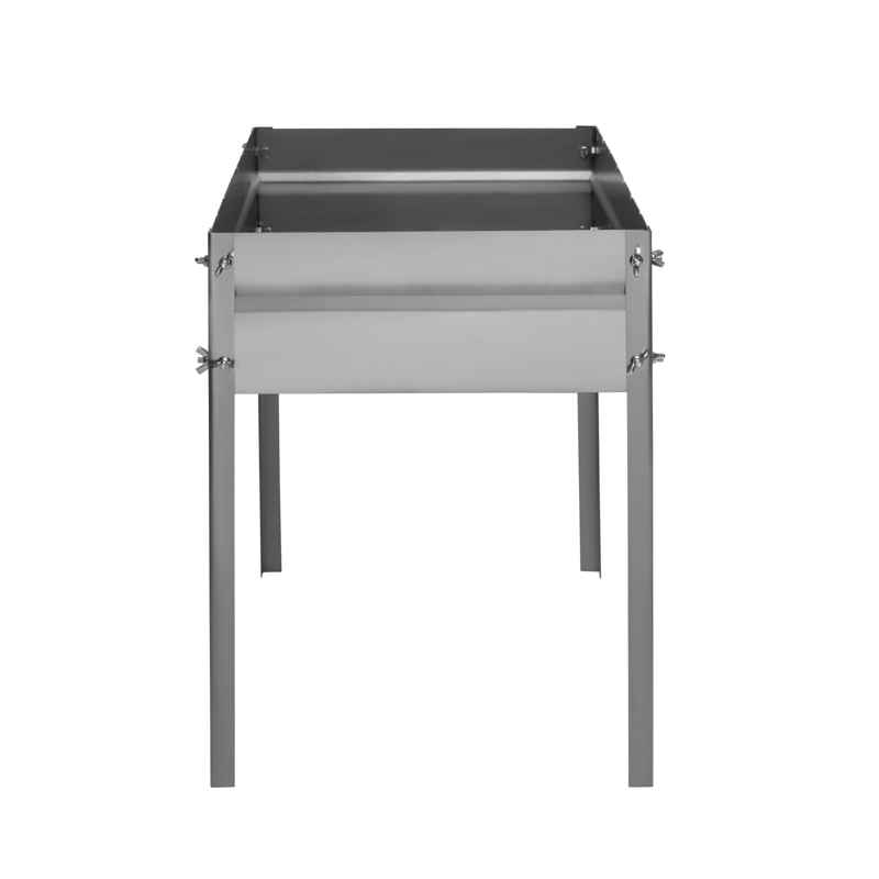 Общая высота ножек составляет 500 мм. Жаровня размером 500х350 мм и глубиной 137 мм позволяет разместить шампуры и получить порцию блюда, рассчитанную на небольшую компанию. Толщина стенки – 1,5 мм.