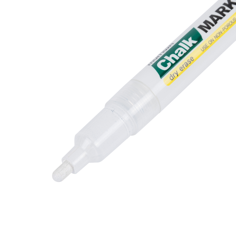 Меловой маркер не крошится, не осыпается, не смазывается и не растекается при нанесении. Чернила поступают дозированно, ровно ложатся на поверхность, обладают свето- и влагостойкостью. Легко удаляются с помощью сухой губки, не оставляют следов и разводов.